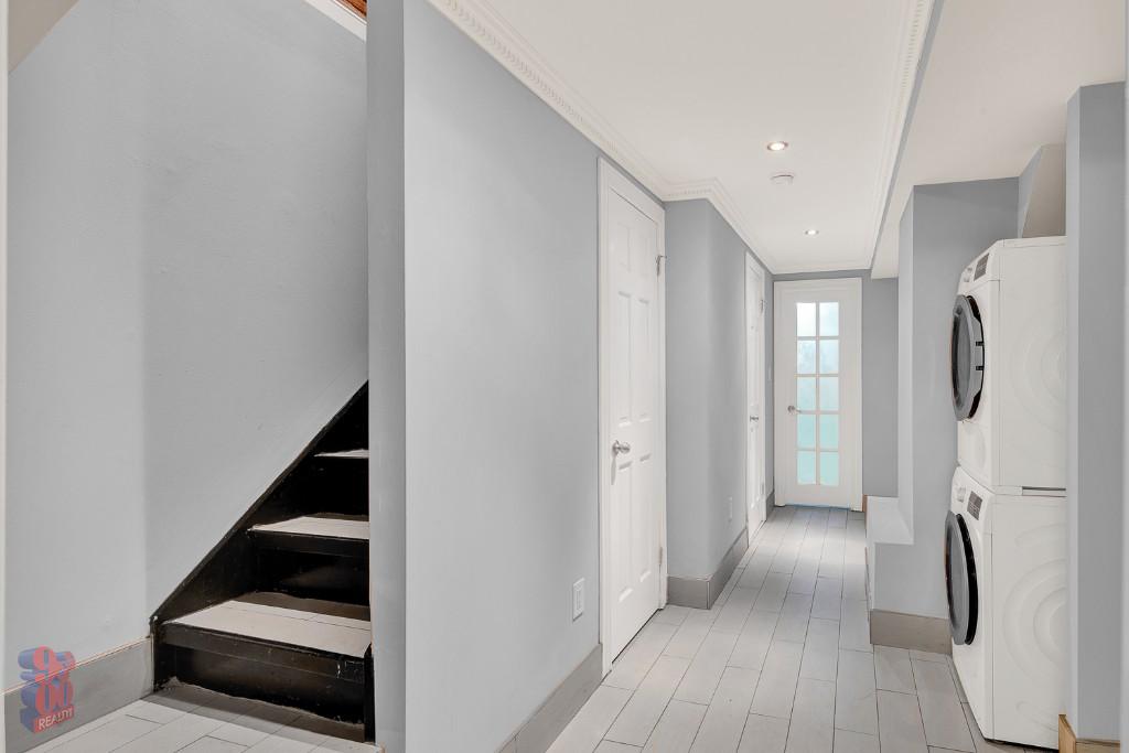 The unit boasts a large granite kitchen with stainless steel appliances, including a dishwasher and wine fridge, as well as a marble bathroom with a rainforest shower. Additional highlights include an in-unit washer/dryer, exposed brick, hardwood floors, and ample closet space. The spacious private backyard is ideal for relaxing or entertaining.