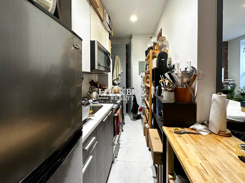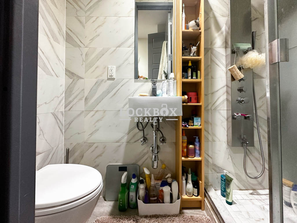 Step into the ultra-modern kitchen, complete with stainless steel appliances, custom cabinets, stone countertops, and a convenient dishwasher, making meal prep and cleanup a breeze. The spacious bedroom is cozy yet functional, featuring ample closet space to keep your belongings organized. The renovated bathroom boasts sleek white ceramic tiles and stylish modern fixtures, creating a serene retreat after a long day. Throughout the unit, you’ll find hardwood floors, an exposed brick wall, big bright windows that flood the space with natural light, and plenty of storage to meet all your needs.