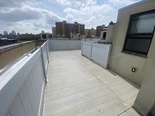 Live above it all—literally. This bright and spacious 4-bedroom, 2-bathroom apartment features a sun-soaked living area with towering ceilings, exposed brick, and a dramatic staircase that leads straight to your private roof deck. Yes, you read that right: your own rooftop escape, perfect for dinner parties, skyline sunsets, or pretending you’re in a music video.