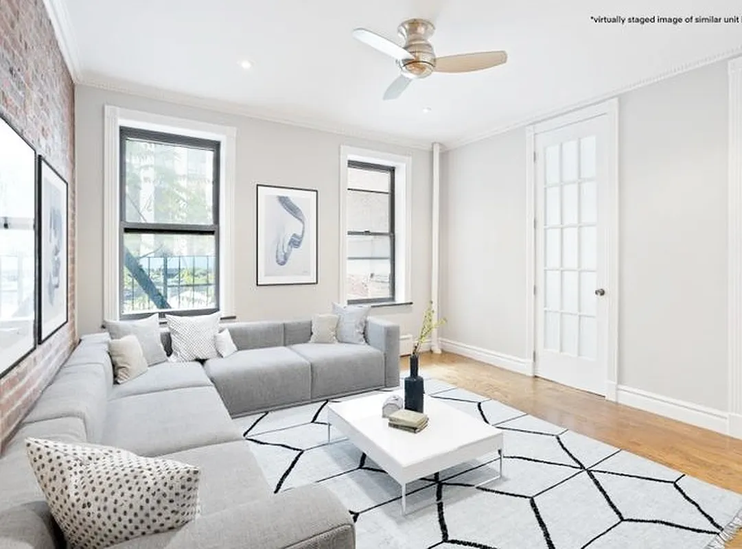 Hardwood Floors & Crown Moldings: Elegant design elements throughout the apartment.