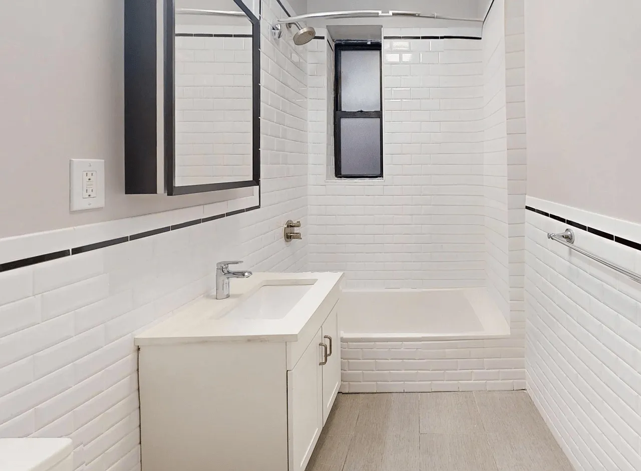 Your private bedroom is generously sized for a queen-sized bed, desk, and dresser, with a large closet and an expansive window that streams sunlight throughout the day. The two full bathrooms—also shared—are fully renovated with contemporary fixtures, marble-tiled shower surrounds, and glass-enclosed shower doors. In-unit laundry facilities are conveniently located downstairs in the basement, and secure bike storage on the ground floor keeps your bicycle safe. Elevator access makes daily comings and goings effortless, and a live-in superintendent ensures prompt attention to maintenance requests.