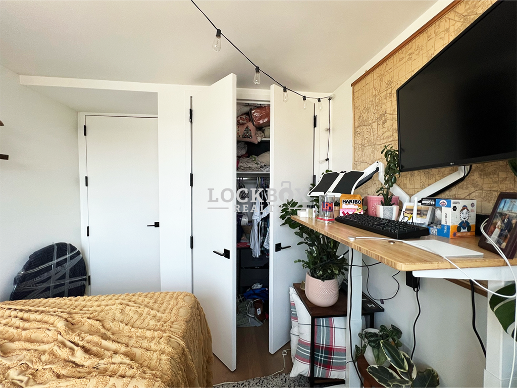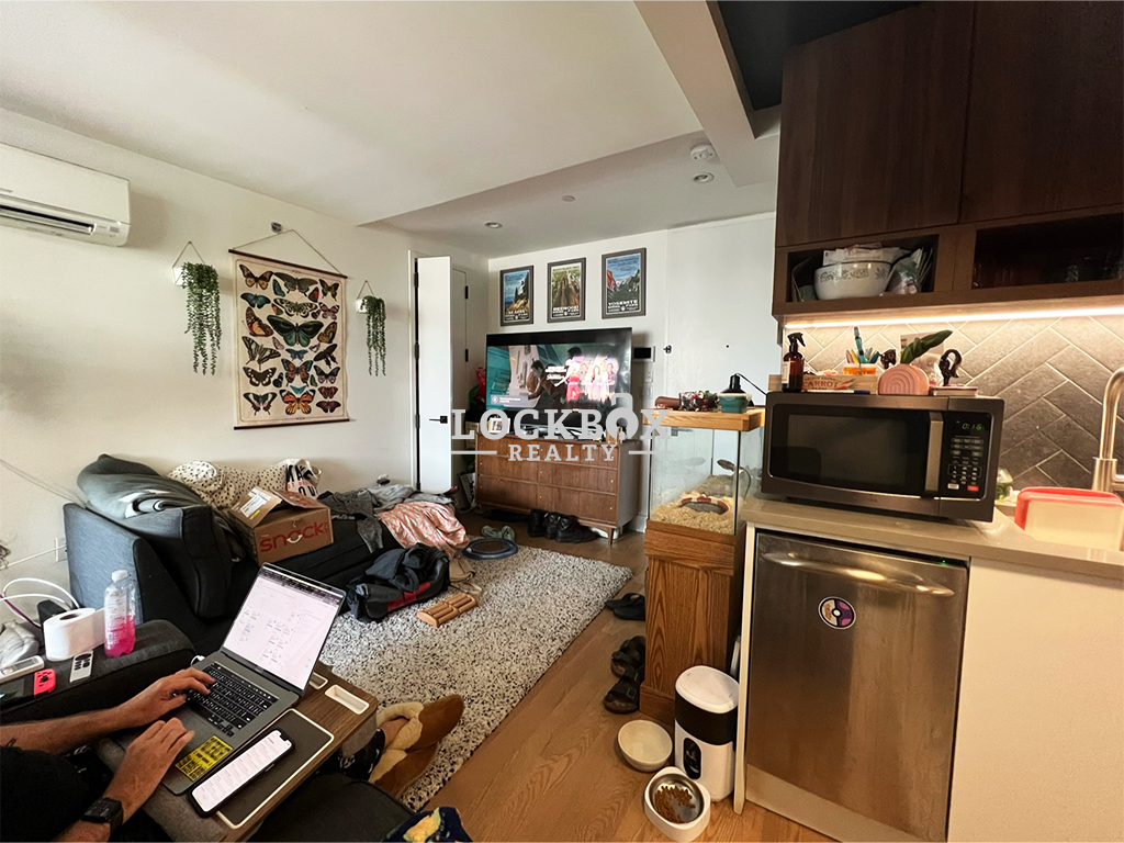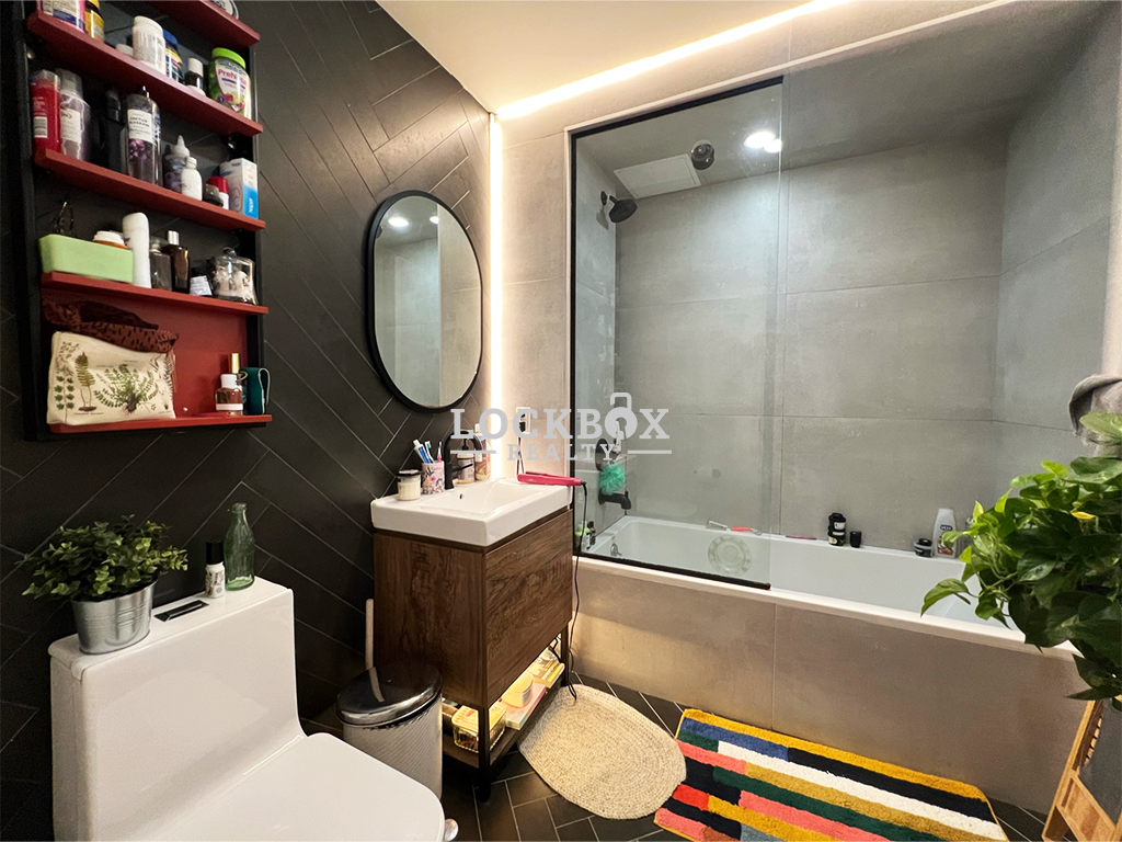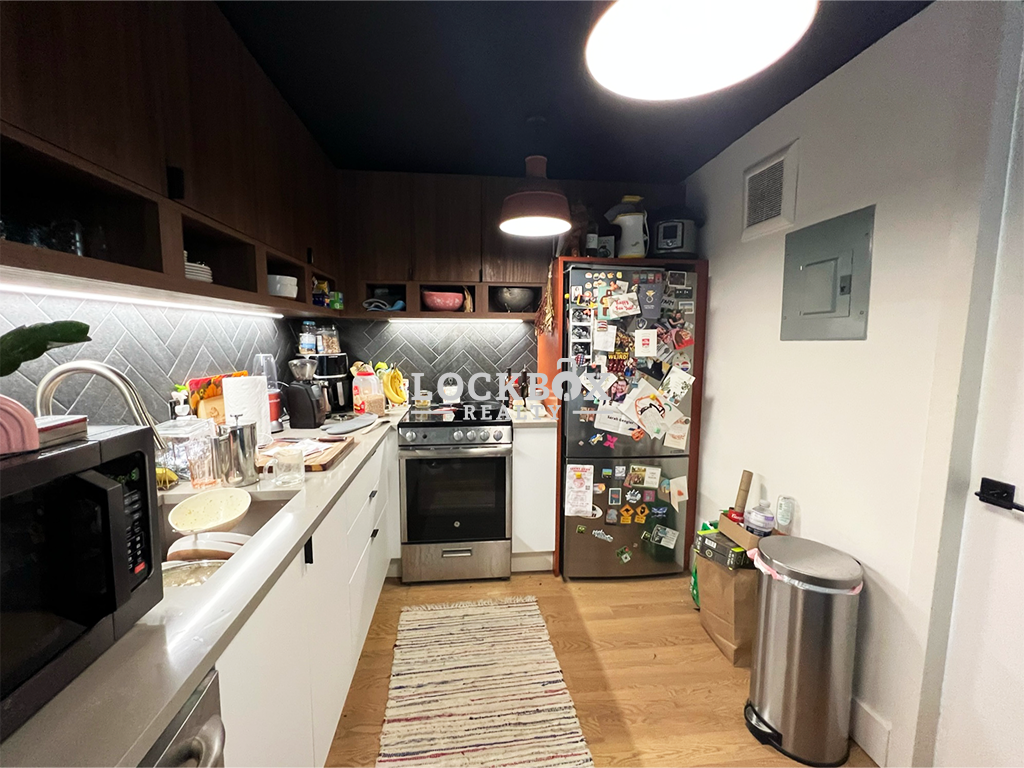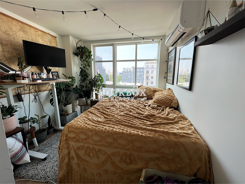 This stunning unit features three queen-sized bedrooms, a sleek kitchen with stainless steel appliances, and a bright, open living space. With large sunny windows, hardwood floors, and high ceilings, the apartment feels airy and inviting. Modern amenities include central air, in-unit laundry, and ample closet space, making this home as functional as it is stylish.